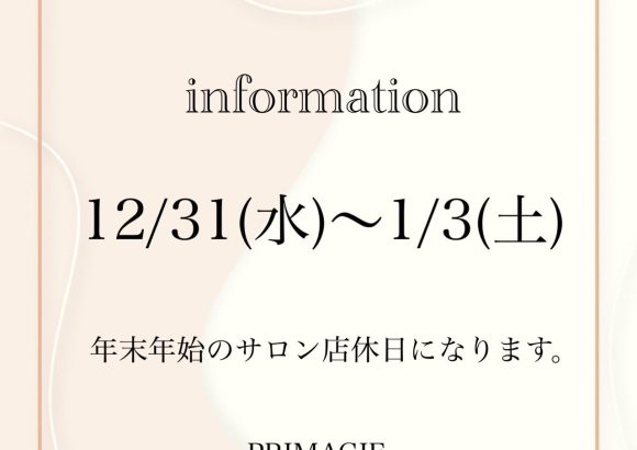 いつもPRIMAGIEをご愛顧いただきありがとうございます。 年末年始店休日のお知らせです。 12月後半のご予約に関しては大変混み合っております。 ご予約はお早めにお願いいたします☺️ PRIMAGIE プリマージェ〒550-0014大阪市西区北堀江1-7-9……